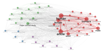 In support of the results of the co-occurrence network (see Figure 5), Table 1 shows that terms related to human issues and demographics dominate the central nodes of the network, with “human” having the highest betweenness centrality (14.581) and PageRank (0.072). This finding is consistent with [8] emphasis on how Southeast Asian IS research is increasingly focused on human-centered issues rather than purely state-centered frameworks. The presence of terms such as "international cooperation" (betweenness = 0.196) and "global health" (betweenness = 0.036) in the top 16 and 18 keywords, respectively, suggests an evolution beyond traditional information retrieval (IR) paradigms. These findings support the observation by [30] of the field's evolving engagement with transnational issues.